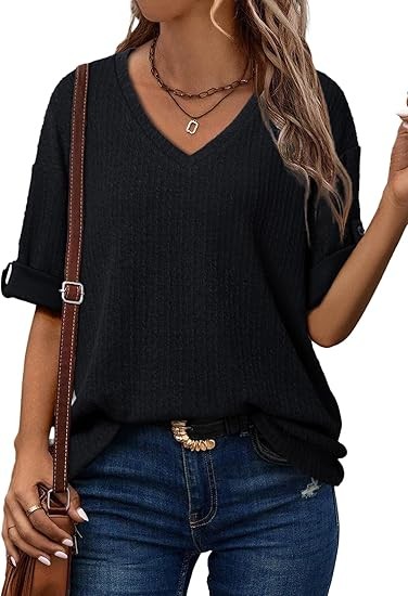 Women's Short Sleeve Shirts is made with lightweight and soft material, which are smooth, elastic and stretchable, flexible and breathable, comfortable to wear. Feature: Tops for Women Trendy, Short Sleeve Shirts for Women, Womens Casual Dressy Tops, Solid Color, Embroidered Tops For Women, Ladies Tops and Blouses, Crew Neck, Business Casual Outfits, Rolled Hem Batwing Sleeve, Unique Knitting Pattern, Loose Fit Pullover Top. Match: The ladies tops and shirts made of soft fabric, you will feel comfortable when wearing it. Easily paired with jeans, skinny leggings, shorts and high boots. Also, you can show your collarbone with a nice necklace. Ocassion: This womens summer tops is suitable for vacation, holiday, party, work, beach, street, sport, workout, occasions in summer, spring, fall and winter days.
