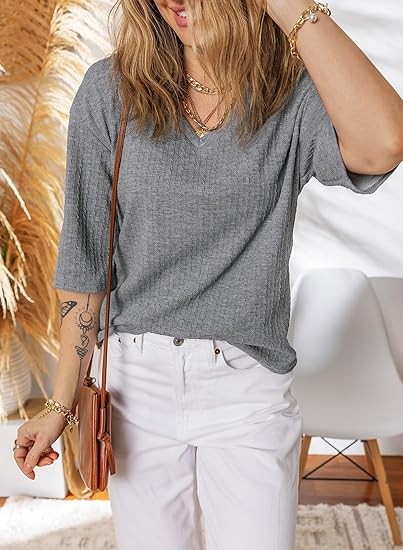 Women's Short Sleeve Shirts is made with lightweight and soft material, which are smooth, elastic and stretchable, flexible and breathable, comfortable to wear. Feature: Tops for Women Trendy, Short Sleeve Shirts for Women, Womens Casual Dressy Tops, Solid Color, Embroidered Tops For Women, Ladies Tops and Blouses, Crew Neck, Business Casual Outfits, Rolled Hem Batwing Sleeve, Unique Knitting Pattern, Loose Fit Pullover Top. Match: The ladies tops and shirts made of soft fabric, you will feel comfortable when wearing it. Easily paired with jeans, skinny leggings, shorts and high boots. Also, you can show your collarbone with a nice necklace. Ocassion: This womens summer tops is suitable for vacation, holiday, party, work, beach, street, sport, workout, occasions in summer, spring, fall and winter days.