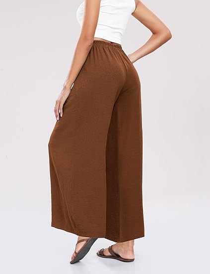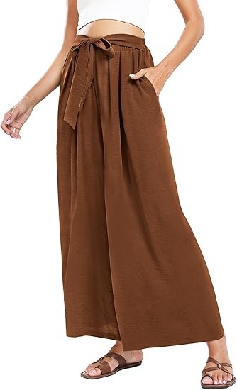 Classic &Comfort】Wide leg high waisted pants for women are made of high quality linen & cotton blend fabric, flowy beach pants lightweight and soft, skin-friend. 【Note Size】Loose dress pants for women for S- XXL, please refer to the picture on detail page ,loose pants for women high waist,wide leg beach pants for women,high waisted boho pants, flowy pants for women,high wasted pants,tie front flowy wide leg pants. 【More unique design】Womens high waisted wide leg pants are designed with solid color. loose fit palazzo pants for women with two pocket,wide leg pants, flowy summer pants,beach cover up pants,elastic waist, bow tie,suitable for all shapes and sizes 【Perfect for More Occasions】Summer dress pants for women who go from the office to casual life with the whole process, yoga, jogging, hiking, outdoor activities, casual wear, home wear, streetweat, going out, vacation or beach wear. summer wide leg pants for women 2024 suit all occasion.