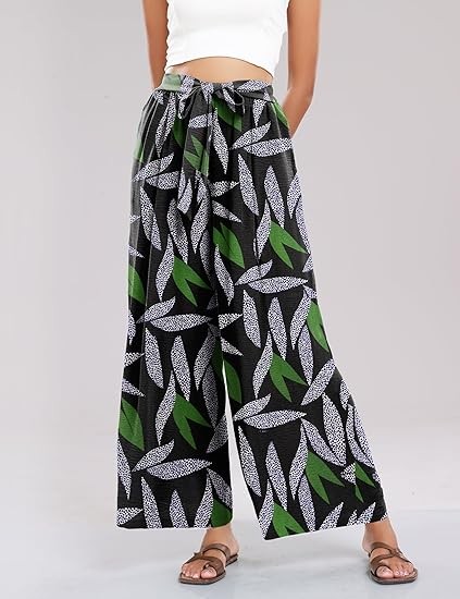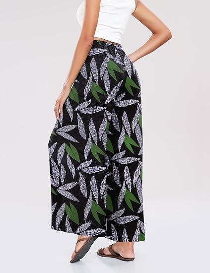 【Note Size】Loose dress pants for women for S- XXL, please refer to the picture on detail page ,loose pants for women high waist,wide leg beach pants for women,high waisted boho pants, flowy pants for women,high wasted pants,tie front flowy wide leg pants.