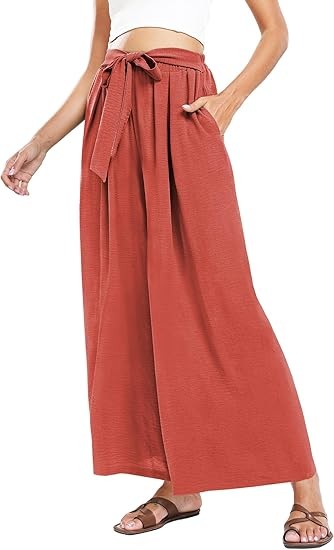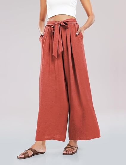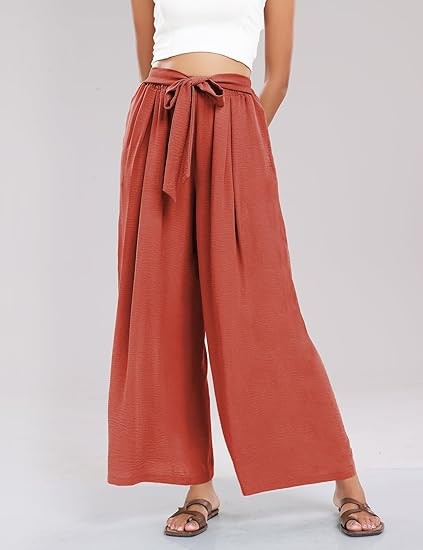 【Note Size】Loose dress pants for women for S- XXL, please refer to the picture on detail page ,loose pants for women high waist,wide leg beach pants for women,high waisted boho pants, flowy pants for women,high wasted pants,tie front flowy wide leg pants.
