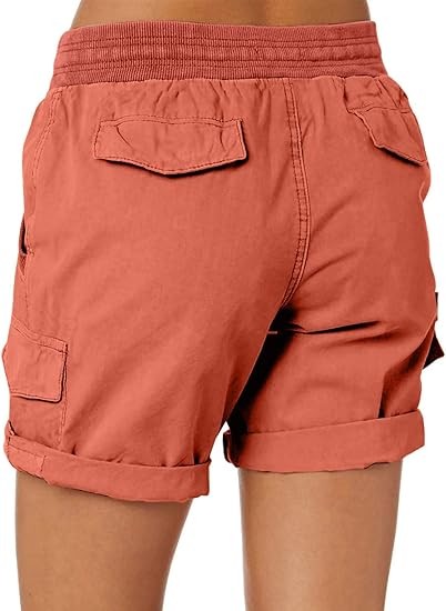 Stay Cool and Stylish: Stay cool and comfortable in our women's shorts made with 98% cotton and 2% elastane for a soft and skin-friendly fit Stay Active and Comfortable: Our sports shorts come with 4 multifunctional pockets, 2 decorative fake pockets on the buttocks (without back pockets), and an adjustable drawstring waist to stay organized during outdoor adventures Get Ready for Adventure:Take on any outdoor activity with ease in our cargo shorts, perfect for hiking, camping, traveling, and fishing.