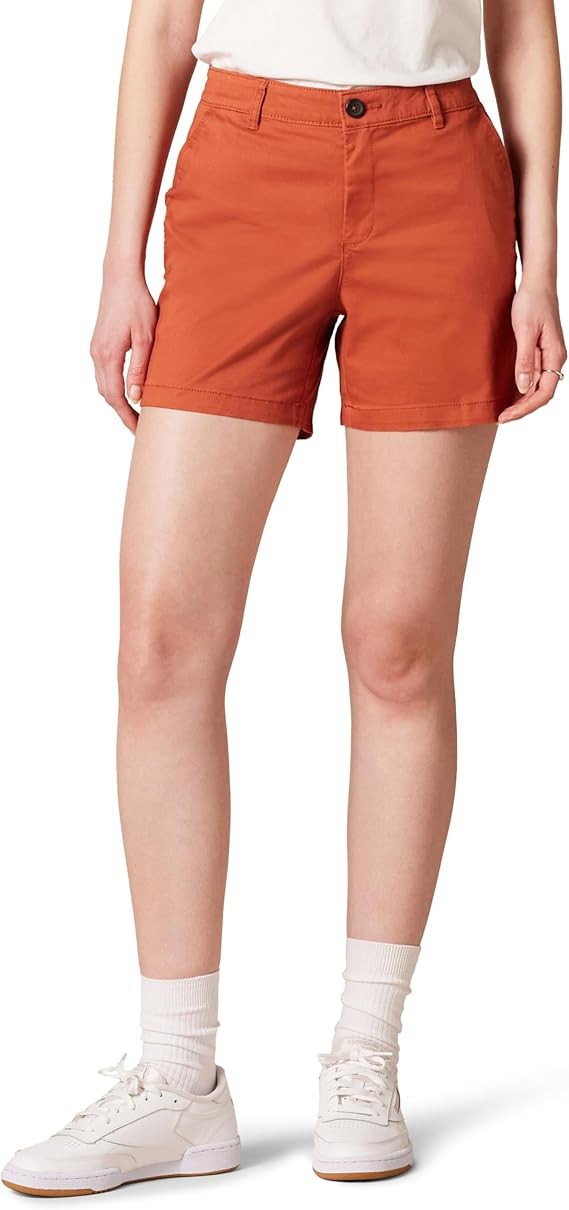 STRAIGHT FIT: Slim fit through the hip and thigh, straight through the thigh and leg opening. Also offered in Curvy sizes for a curvier fit through the hip and a narrower waist. STRETCH COTTON TWILL: Washed for softness, this cotton twill is naturally breathable and has a bit of stretch for comfort and flexibility. CLASSIC KHAKI SHORT: These classic Khaki shorts are the ultimate summer style. Offering a clean, gently structured silhouette, these shorts also fit with comfort and ease for at work, weekend exploring, or running errands. Complete your look with Essentials Women's Sneakers or Sandals.