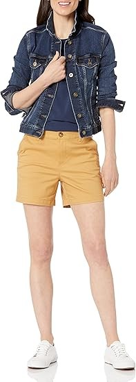 STRAIGHT FIT: Slim fit through the hip and thigh, straight through the thigh and leg opening. Also offered in Curvy sizes for a curvier fit through the hip and a narrower waist. STRETCH COTTON TWILL: Washed for softness, this cotton twill is naturally breathable and has a bit of stretch for comfort and flexibility. CLASSIC KHAKI SHORT: These classic Khaki shorts are the ultimate summer style. Offering a clean, gently structured silhouette, these shorts also fit with comfort and ease for at work, weekend exploring, or running errands. Complete your look with Essentials Women's Sneakers or Sandals.