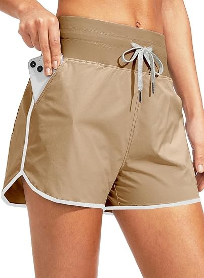 High Waisted Swim Shorts for Women with Pockets Drawstring Color Block Quick Dry Swim Shorts with Liner